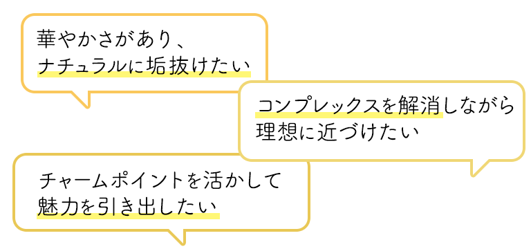 MAMEWでは独自の顔分析手法である「骨筋診断」を通して、あなたの顔の印象を決めている要素を抽出していきます。なりたいメイクの仕上がりをイメージ